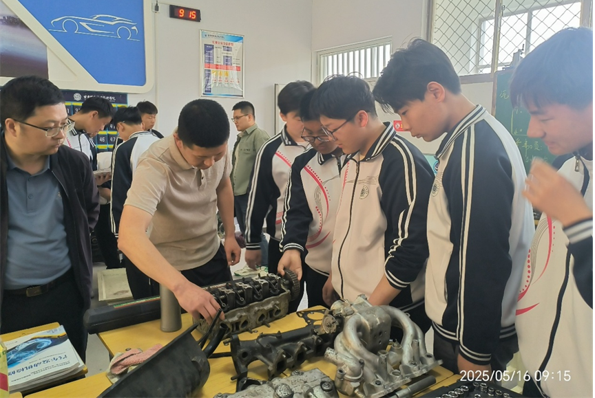 为了进一步提升汽车维修专业学生的实践技能,增强其对汽车发动机结构的理解,结合“2025年职业教育活动周”活动安排,技师学院工作部于5月16日上午在北校汽车实训基地206实训室开展“汽车发动机气缸盖拆装”工学一体化教学活动。主讲人何宝旭老师,现场40余名师生参与此次教研活动。