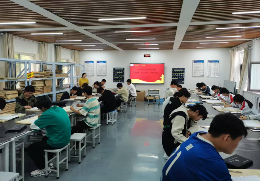 5月14日,技师学院工作部结合2025年职业教育活动周工作安排,以“一技在手,一生无忧”为主题开展“手工绘图”技能竞赛。本次活动通过竞技的形式,让同学们在相互学习中提升制图技能,激发学生对机械制图学科的热情,促进学风建设、提高教学质量。本次制图比赛试题分基础知识、作图两部分,重点考察参赛选手做图技巧、空间想象能力、零件表达方案等专业能力,衡量学生对制图技法与制图规范的理解和掌握程度。