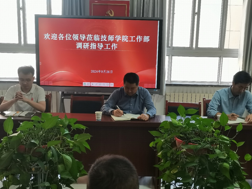 926日下午,学校党委副书记、校长刘乃君深入技师学院工作部走访调研,学生处、办公室相关负责人陪同调研。技师学院工作部班子成员、教师代表、辅导员代表在立德楼B208会议室参加调研座谈会。