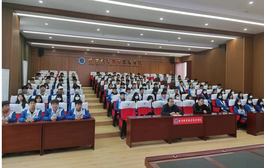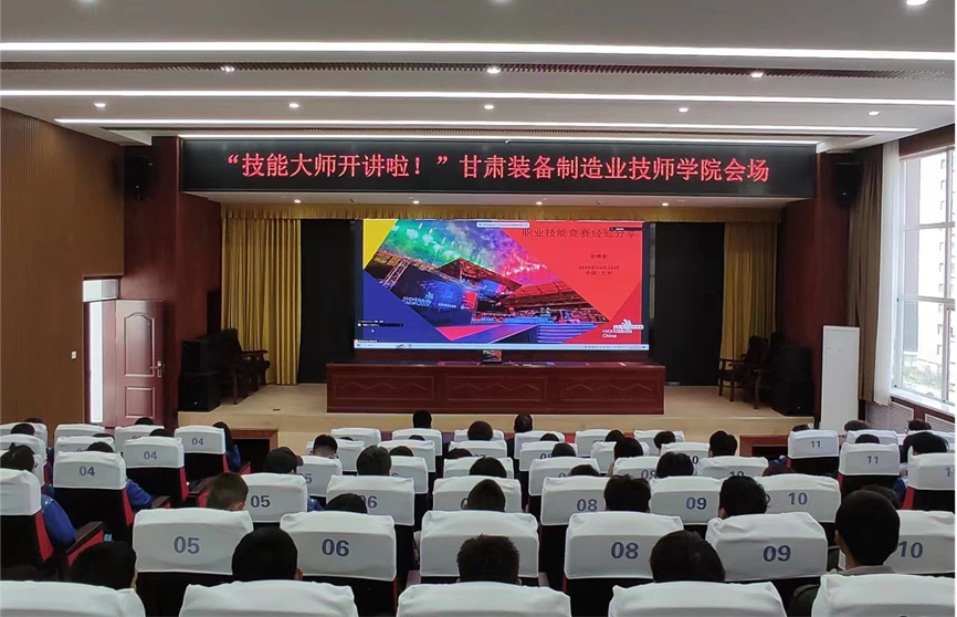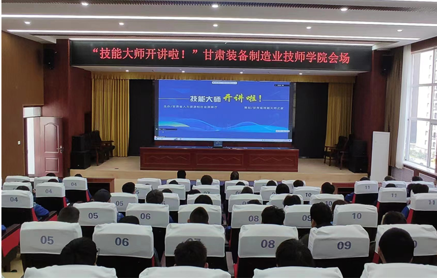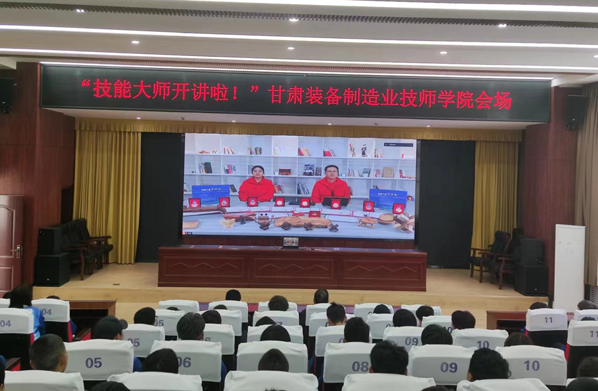 甘肃装备制造业技师学院在综合楼六楼报告厅设立分会场,1300余名师生在报告厅和教室通过腾讯会议观看了直播活动。