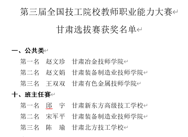 我校教师在第三届技工院校教师能力大赛甘肃选拔赛中喜获佳绩