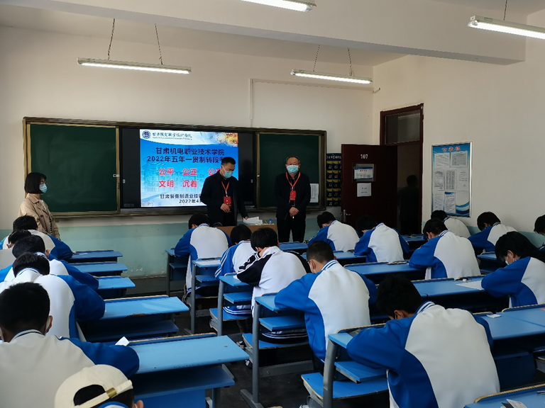 4月23日上午,我院组织2022年五年一贯制转段升学考试,党委委员、副院长张德龙、毛文辉、杨俊现场督查、巡考。纪检监察室、招生就业处、技师学院工作部负责人参加了此次巡考工作,目前考试工作已圆满结束。