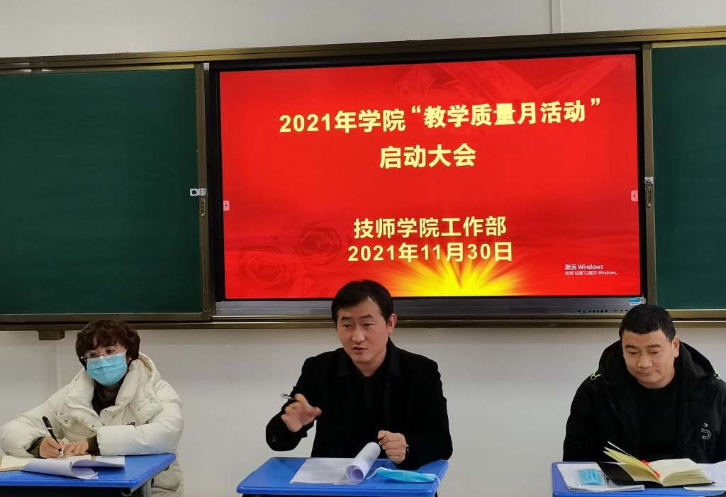 11月30日下午,技师学院召开“教学质量月活动”启动大会,副院长杨俊出席会议,技师学院专兼职教师、学生代表等50多人参会,会议由王会平主任主持。