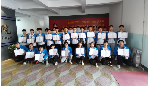 首先,为获奖学生颁发荣誉证书,并拍照留念。其次,“液压与气动系统装调维护”赛项第一名获得者于永昊做了题为“以技傍身,技能成才”的发言,以此激发学生学习专业技能的兴趣,在学生中形成比学习、比技能的良好氛围,以大赛为契机,提高学生的技能水平,为今后实习和求职就业打下坚实的基础。