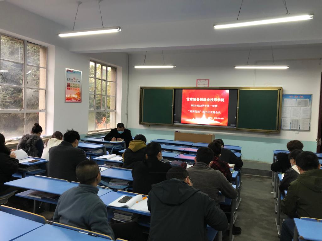 根据目前疫情防控形势,技师学院10月19日下午紧急召开班主任会议,走读学生会议,晚自习各班召开主题班会,层层传到压力,靠实责任,严格落实学院疫情防控的各项措施。