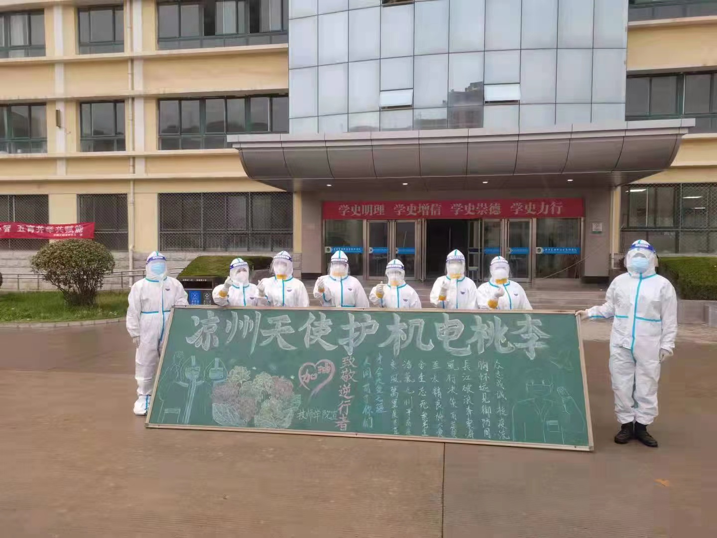 面对严峻的疫情形势,医护人员主动请缨,从祖国四面八方奔赴天水疫情一线,在寒风中坚守,用最美逆行为机电学子筑起坚实的“防疫墙”。