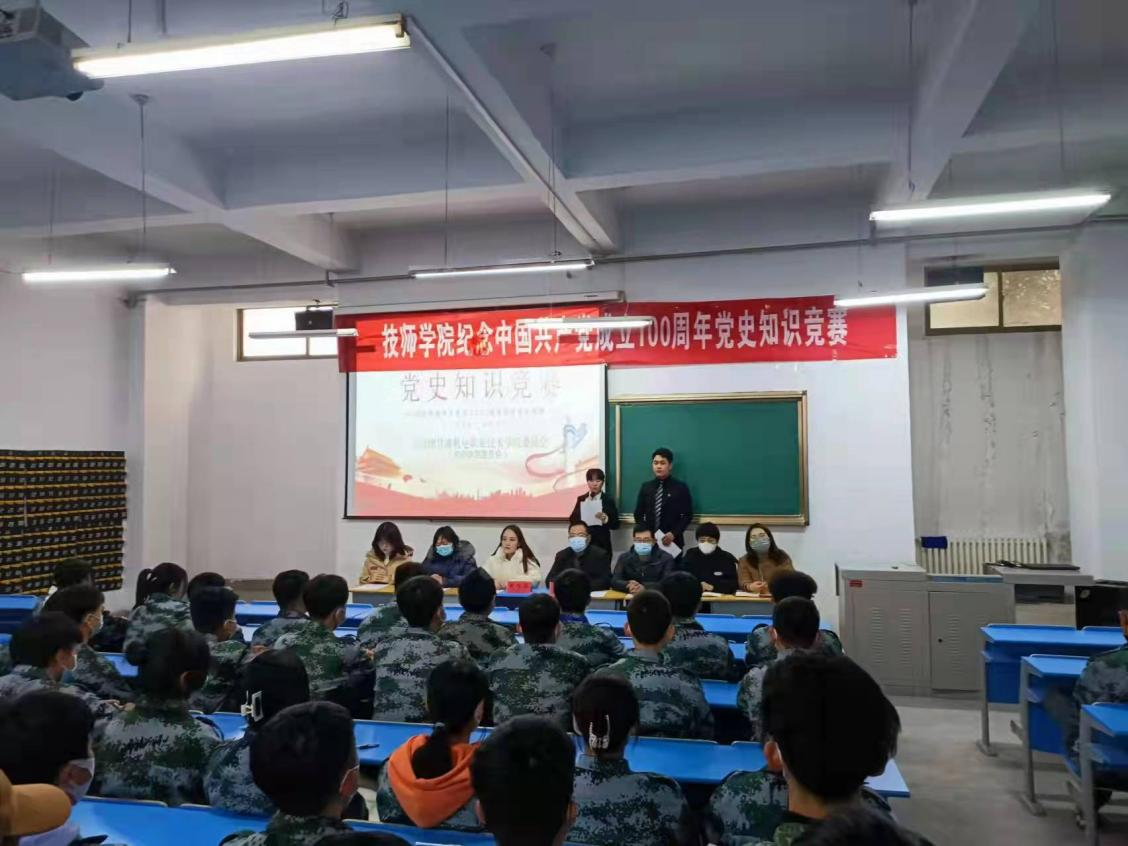 为庆祝中国共产党成立100周年,扎实开展好党史学习教育,12月10日下午,技师学院在北合一教室举行举办“学党史、强信念、跟党走”庆祝建党100周年党史知识竞赛(决赛)活动。技师学院宋军平、各位专职辅导员、2020和2021级共计130名学生参加了此次活动。参赛学生全神贯注、沉着冷静、以良好乐观的心态参加比赛。