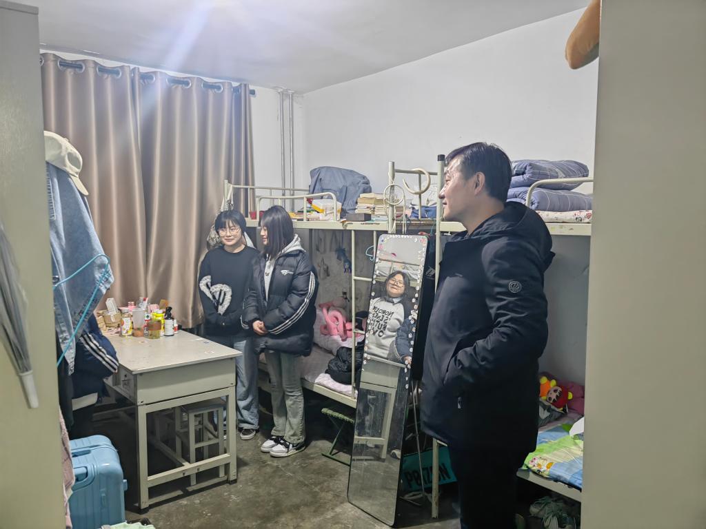 新学期,新气象,为深入了解学生进入校园后的学习和生活情况,更好地掌握学生思想动态,2月26日晚,学院党委委员、副院长杨俊以及技师学院各包班中层干部深入学院学生宿舍,与学生面对面、零距离交流,并给予他们暖心的关怀。走访宿舍期间,领导们就寒假期间的学习和生活情况,新学期的心理和思想状态等方面,与同学们展开面对面地交流。详细询问同学们开学遇到的各种困难和问题,并给出有益的建议。