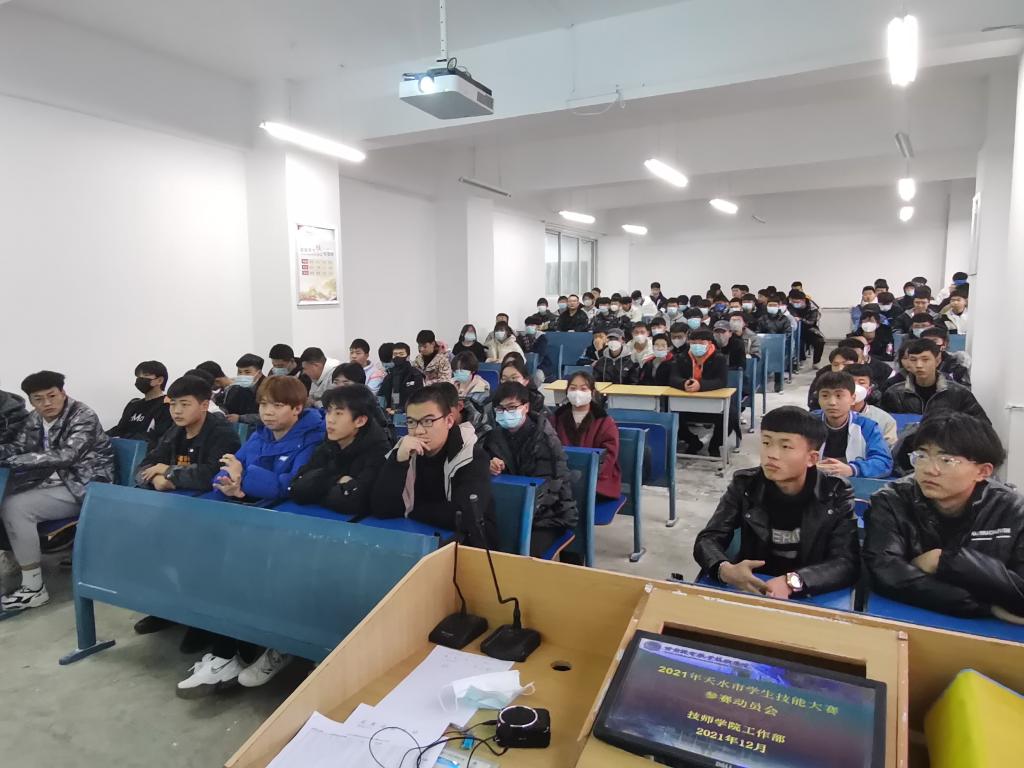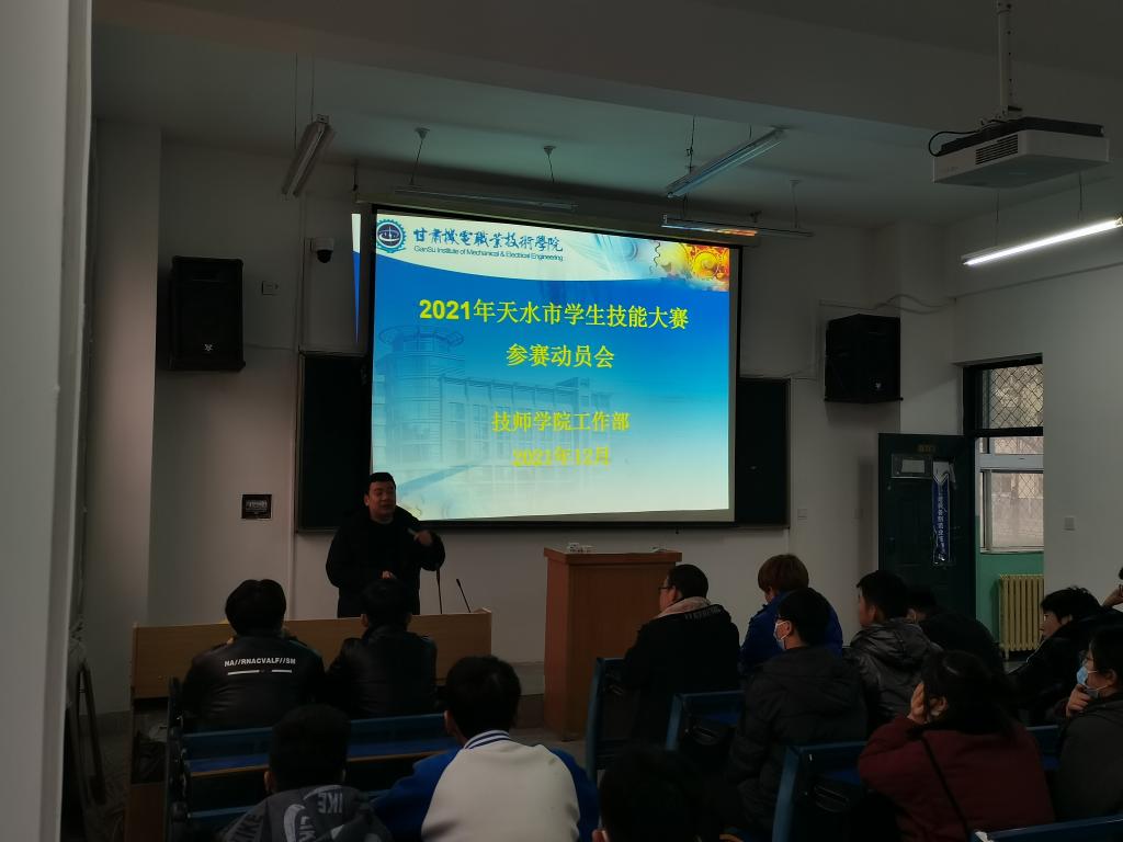 12月16日下午17时,按照技师学院教学质量月活动安排,在3-A101教室组织2021年天水市学生技能大赛参赛选手召开赛前动员会,主任王会平出席会议。参赛选手及汽车营销、计算机检测与维修赛项指导教师100余人参加,会议由教学干事张军军主持。