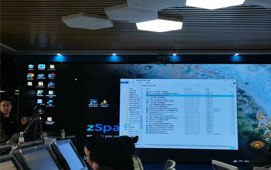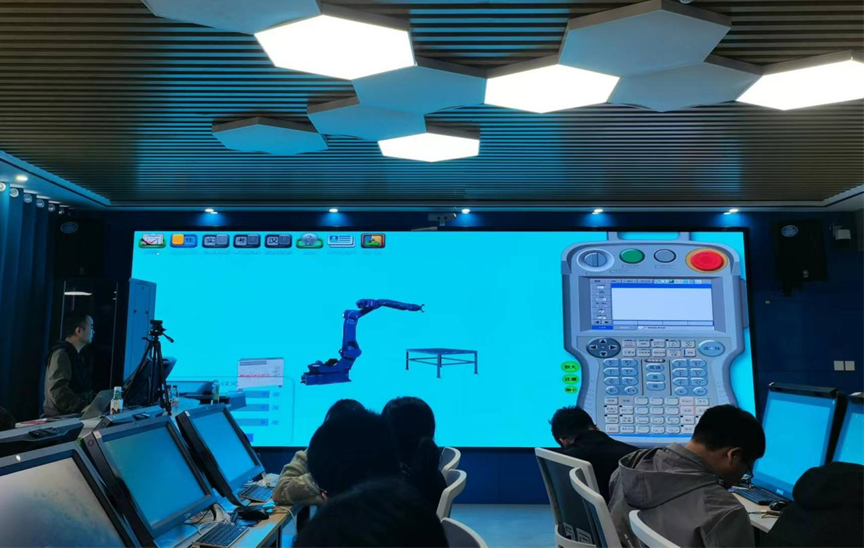 培训中,周杨简单对24款教学软件做了介绍,对“机械十字滑台装调修软件和ABB工业机器人示教编程软件从安装、案例教学展示、操作考核方面做了现场演示。期间,参训教师进行了体验学习,就教学软件使用中存在的问题与工程师作了深度交流。所有参训教师认真听课,独立思考,虚心请教,力争在接下来两天的培训时间里学有所得、学以致用。