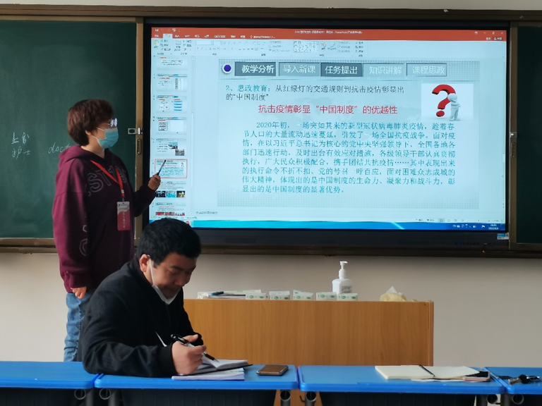 会上,各位教师积极发言,结合自身课程内容,教学方法各抒己见。全省 “教师教学能力大赛”一等奖获得者和学院“积极教学法教学能力比赛”第一名获得者许娇娥老师做了课程思政案例展示,她结合积极教学法方法论,从教学学情分析,导入新课,任务提出,任务总结,学习目标测评整个过程中,始终贯穿课程思政内容。引导学生积极思考,从小事做起,践行工匠精神,真正成为课堂主人翁。